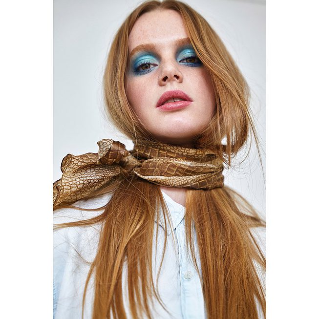 Start with the mascara and get right to the root of the lashes, you can clean this up before you do the rest of your makeup. Separate your lashes and remove any clumps to ensure separation. With the eye colour, start with a veil of cream colour and then add a powder pigment, starting on the middle of the eyelid and blending out. Use a circular brush with nothing on to blend the colour, go back and forth (we call this the banana) and circle it at the end just to fade the colour out. Use your finger to add a stronger colour in the middle of the eyelid for a real pop of intense colour in the centre. Use a hair mascara to knock back the colour of the brows and lighten them so all focus is on the eyes. Et voila!